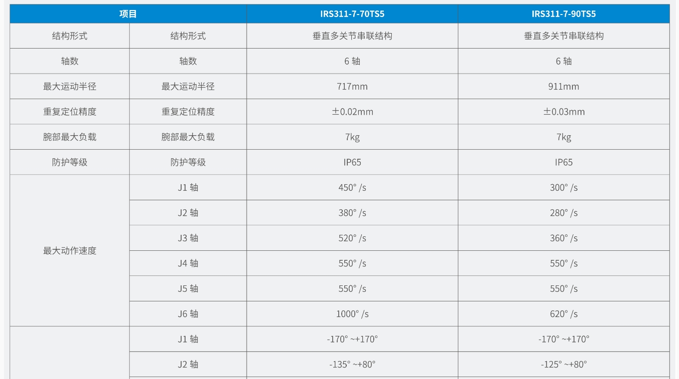 IRS311-7 系列6 關(guān)節(jié)機器人標(biāo)準(zhǔn)版最大臂長717mm,加長版可達911mm,最大負載可達7kg,中空手腕結(jié)構(gòu)設(shè)計,使得機器人布線更加方便,避免周邊布線配管磨損對生產(chǎn)環(huán)境的影響,具有結(jié)構(gòu)緊湊、輕巧、柔性化高、重復(fù)定位精度高、運動速度快等特點。配備高性能IRCB500系列控制系統(tǒng),具有很強的易用性和可靠性,廣泛應(yīng)用于機器人裝配、貼標(biāo)、貼片、點膠、插件、焊錫、分揀、打磨、拋光等領(lǐng)域。