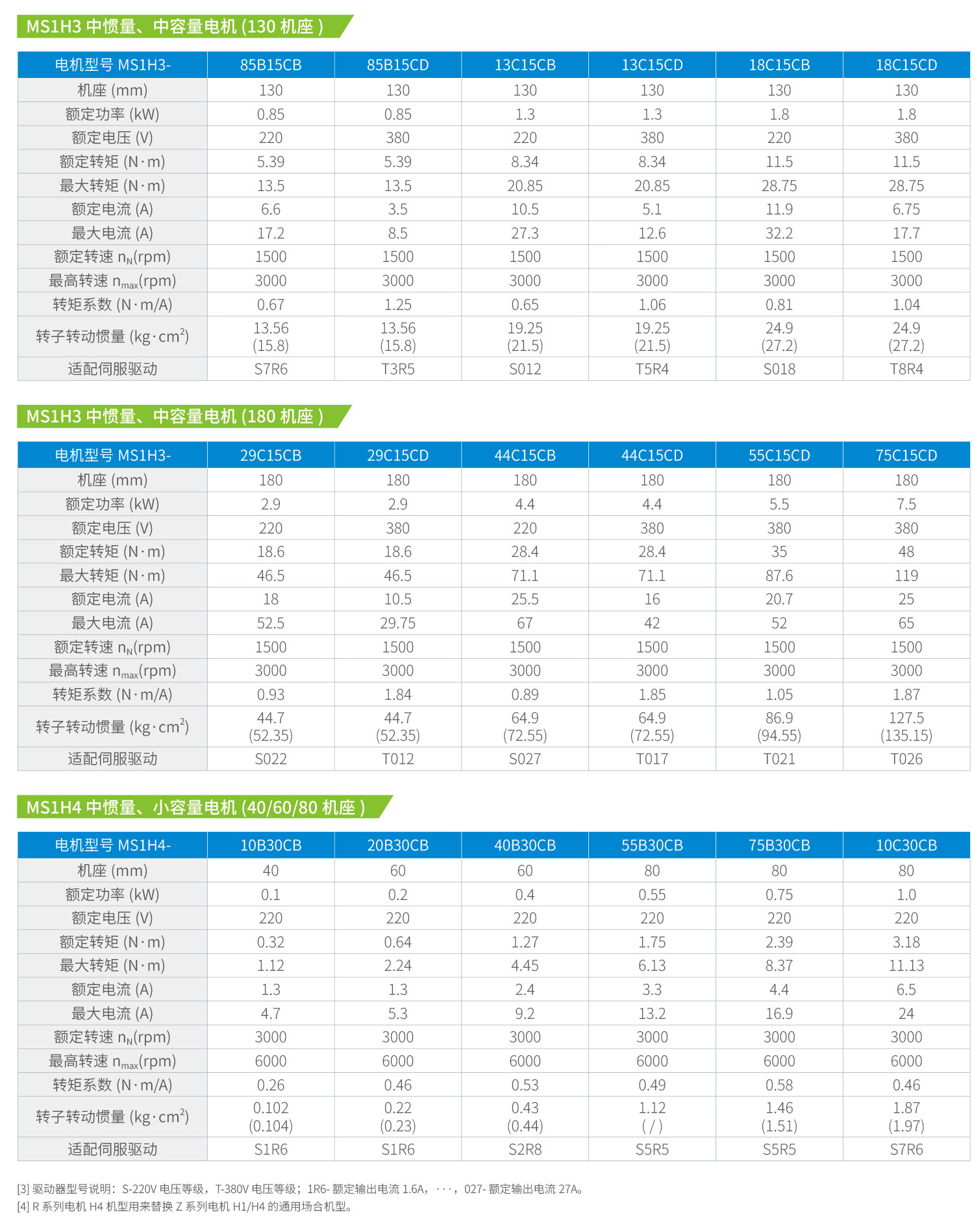 100、130、180 機座增加220V 電壓電機。