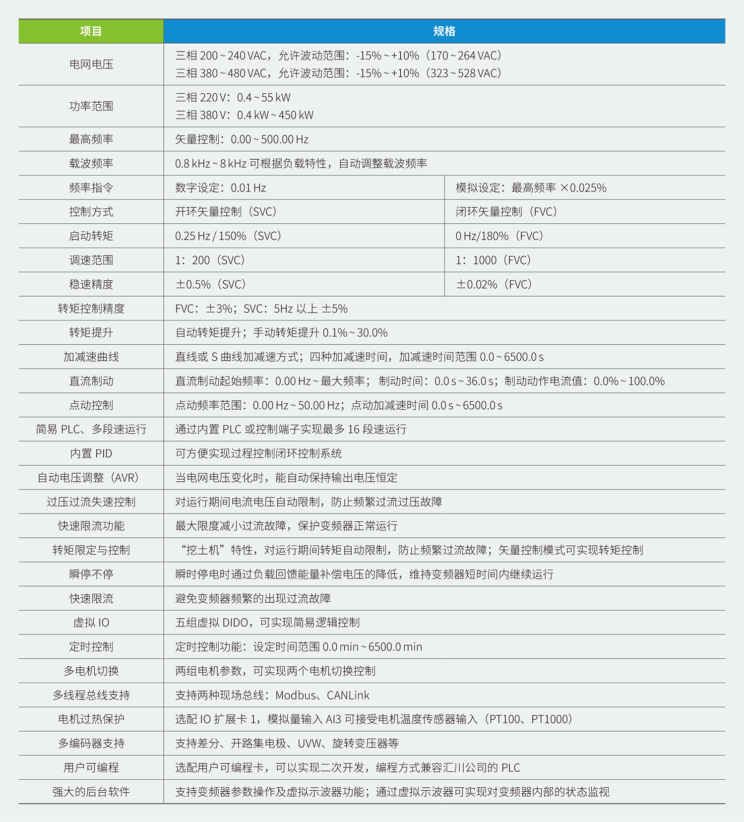 穩(wěn)速精度高,調(diào)速范圍廣;矢量控制下高速輸出;低速轉(zhuǎn)矩大,轉(zhuǎn)矩脈動(dòng)??;多種電機(jī)驅(qū)動(dòng)