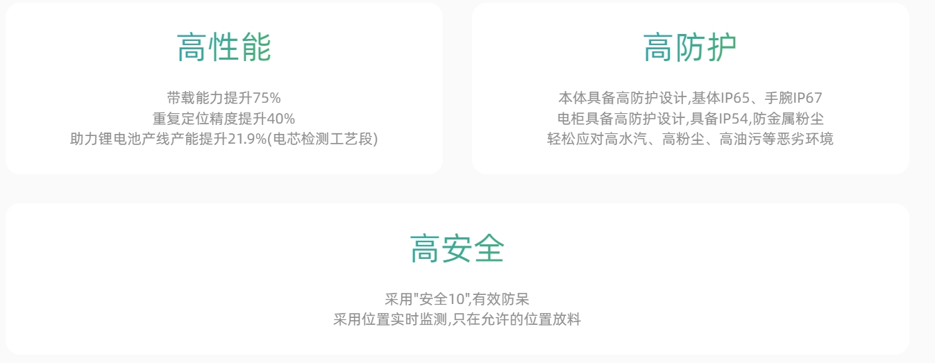 IR-R35系列六關(guān)節(jié)機(jī)器人,最大負(fù)載達(dá)到35kg,具備精度高、結(jié)構(gòu)緊湊、柔性安裝等特點(diǎn), 可實(shí)現(xiàn)更緊湊的工作單元布局,為大批量、柔性生產(chǎn)保駕護(hù)航。